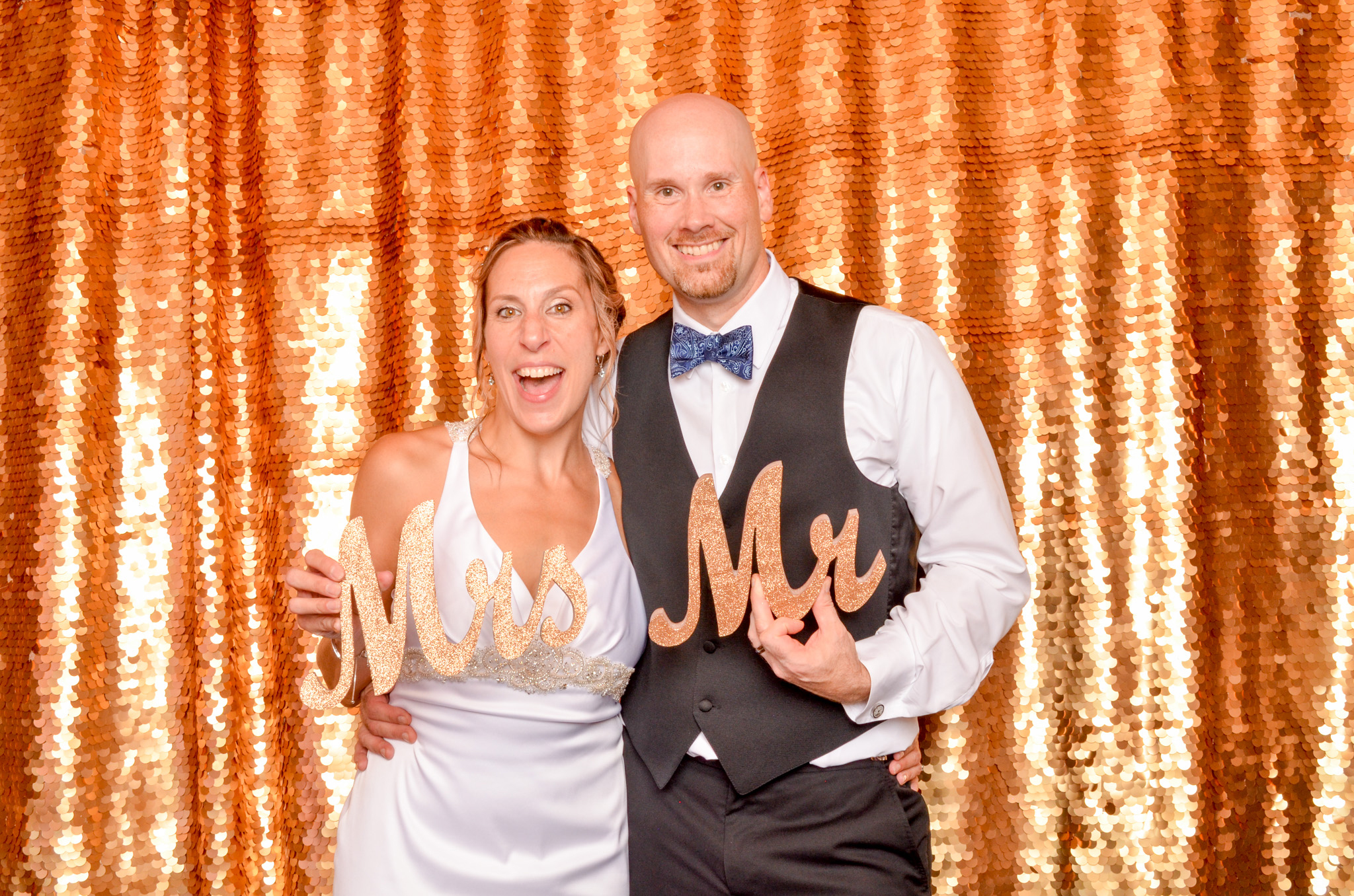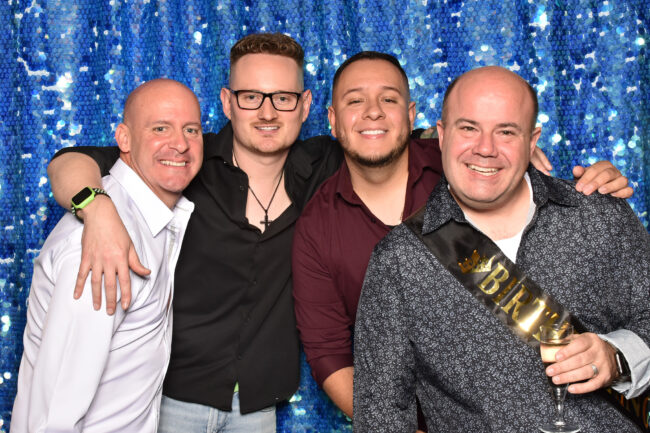 A more premium look with added flexibility. While normally 8′ × 8′, sequin backdrops can be adjusted down to around 6–7 feet tall, making them ideal for tighter venues.
