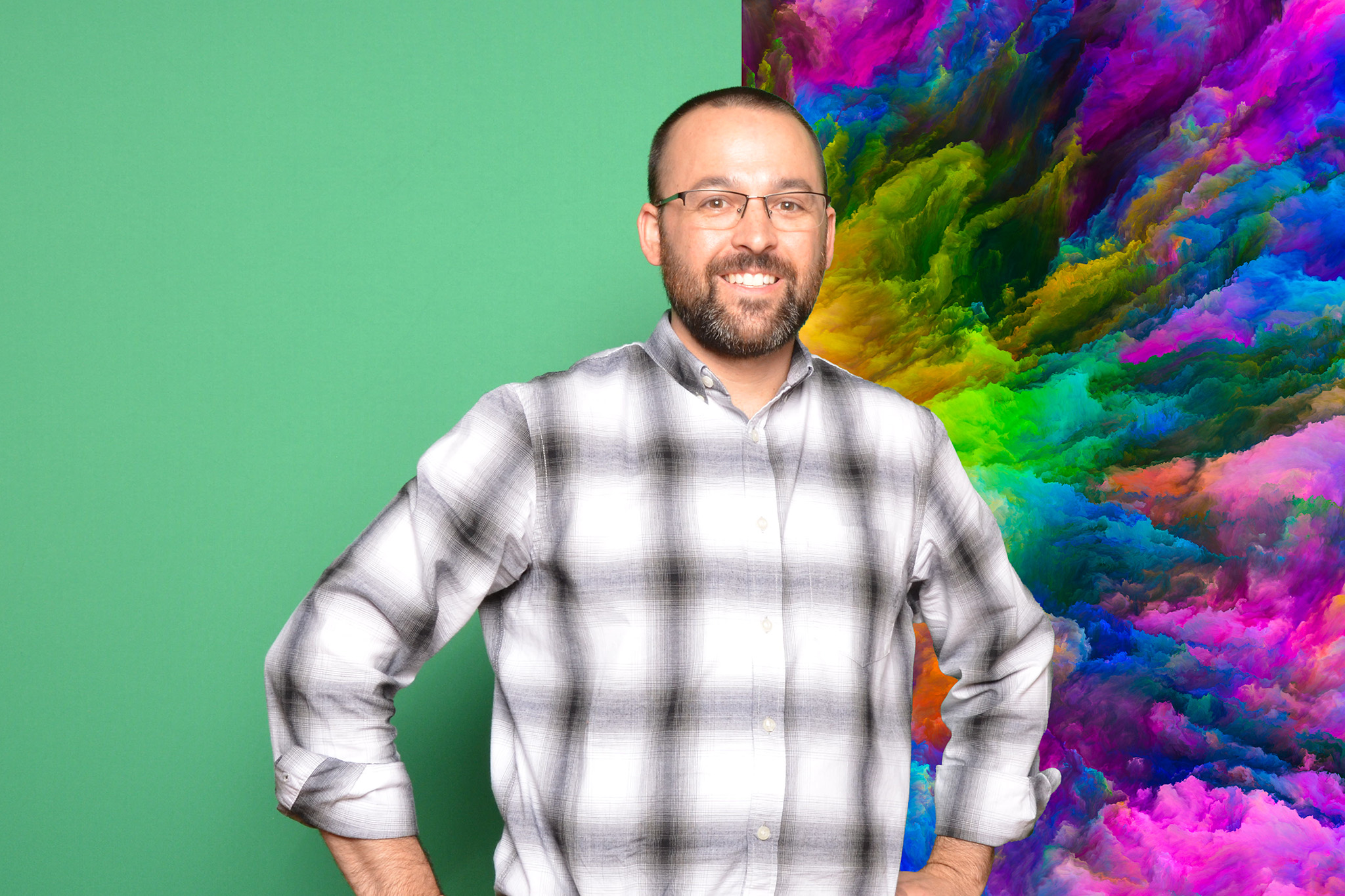While the physical backdrop is a large green screen (not the prettiest on-site), the final photos offer endless creative possibilities.